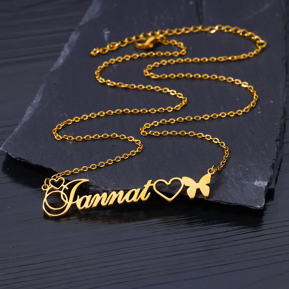 Custom Hollow Heart Name Necklaces For Women Gold Color Personalized Name Butterfly Necklace Stainless Steel Jewelry Gift 2024 Gold Color – Sumsfashion