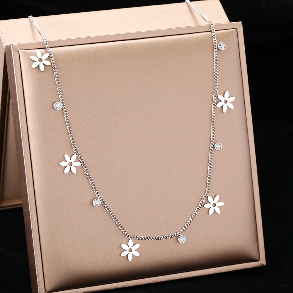 Stainless Steel Necklaces Vintage Flower Zircon Pendants Aesthetic Trending Products Kpop Necklace For Women Jewelry Gift New in Silver Color – Sumsfashion